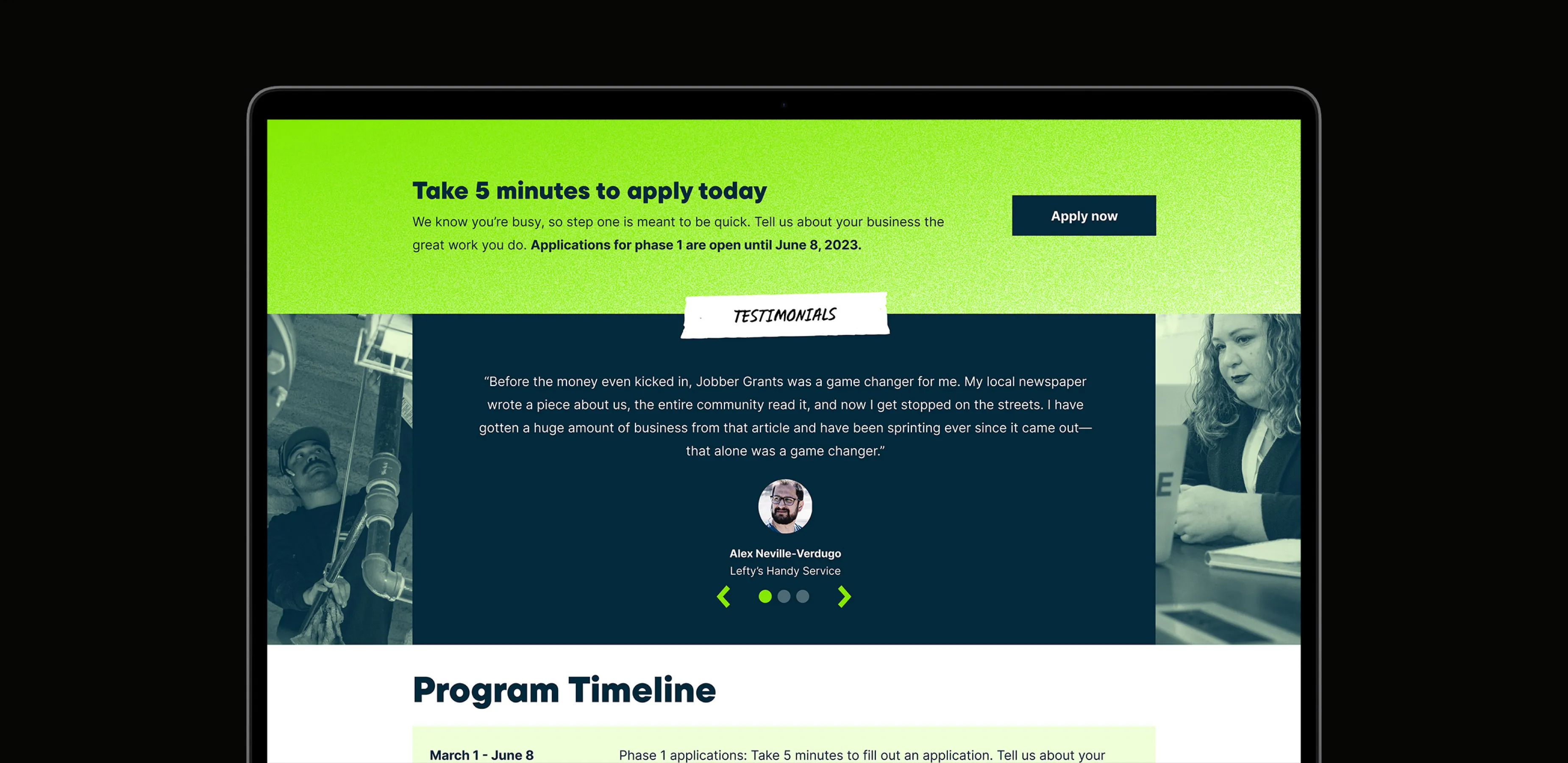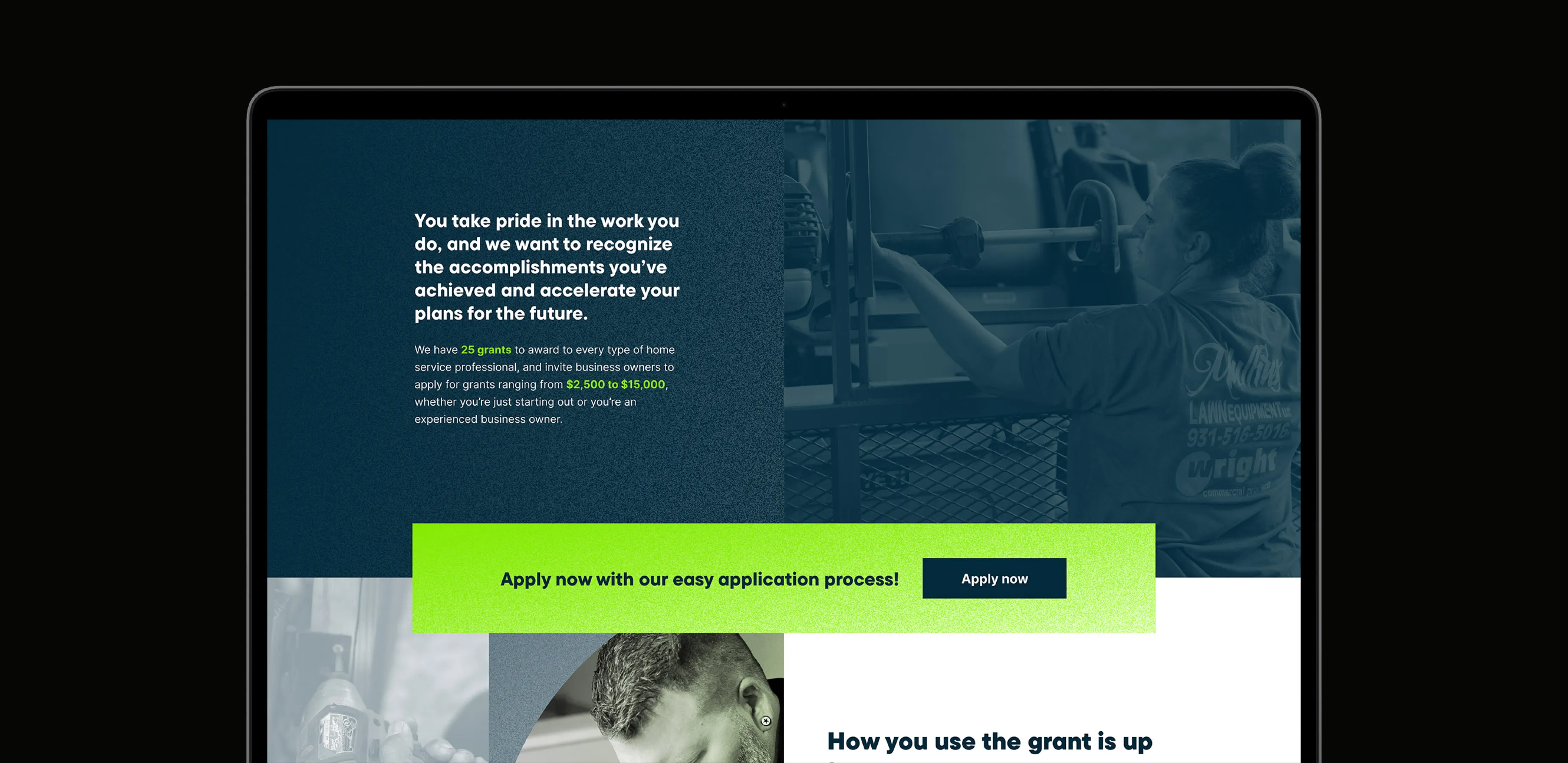 Ultimately a sub-brand of Jobber, the new branding needed to feel at home within Jobber, as the potential for first brand contact from new audiences is high with Jobber Grants.
